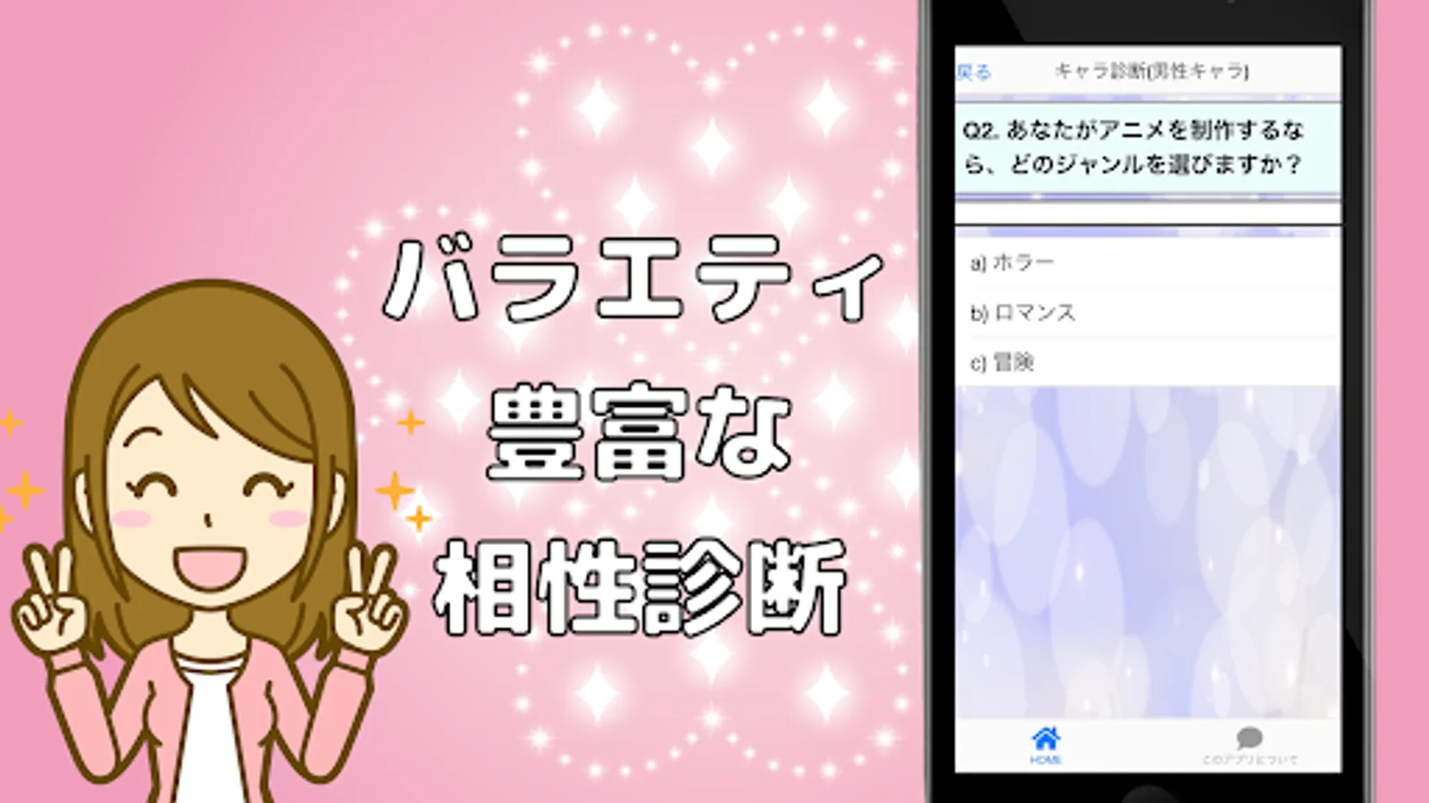 You can enjoy quizzes and compatibility diagnosis in the app!