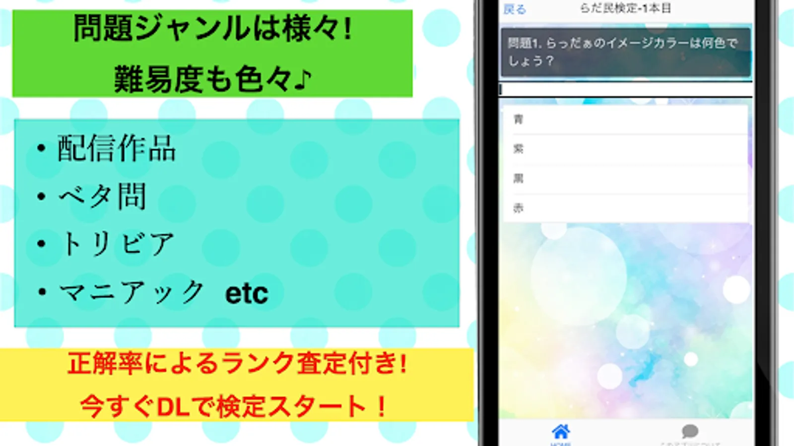 This application is a "choice format" quiz that you can easily enjoy at any time (^ ^)