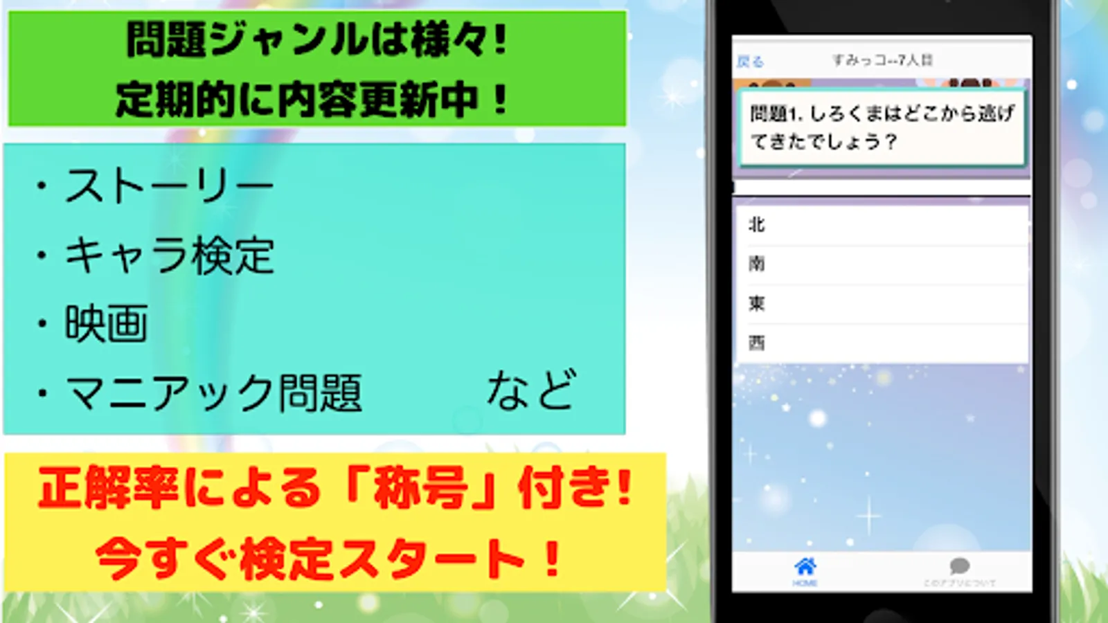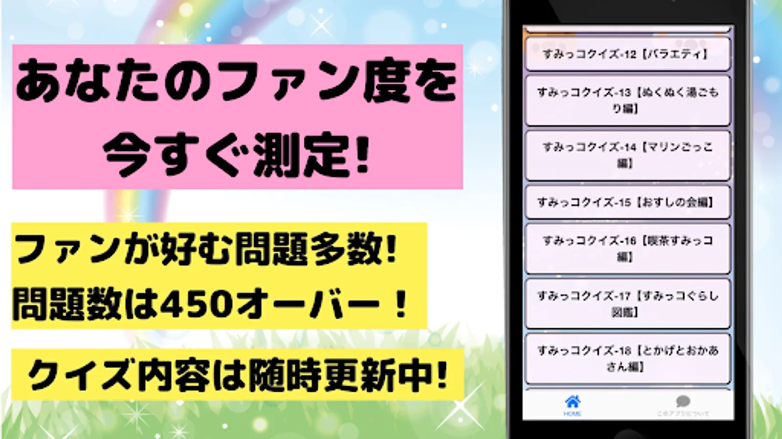 An unofficial quiz app for the popular healing character "Sumikko Gurashi"! !!