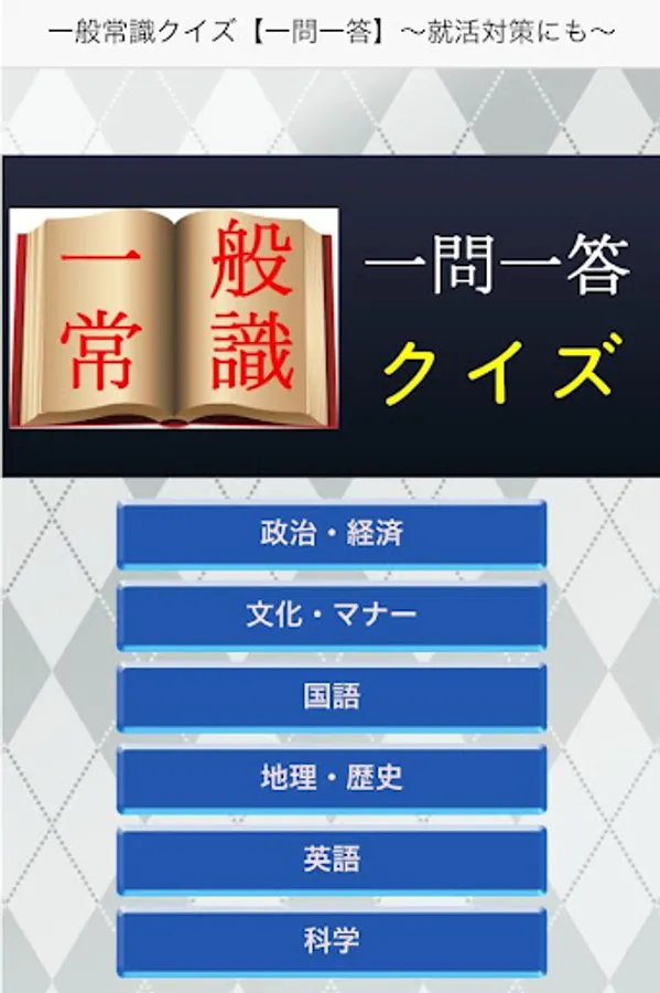 問題は政治・経済、文化、マナー、国語、地理・歴史、英語、科学から幅広く出題されます。