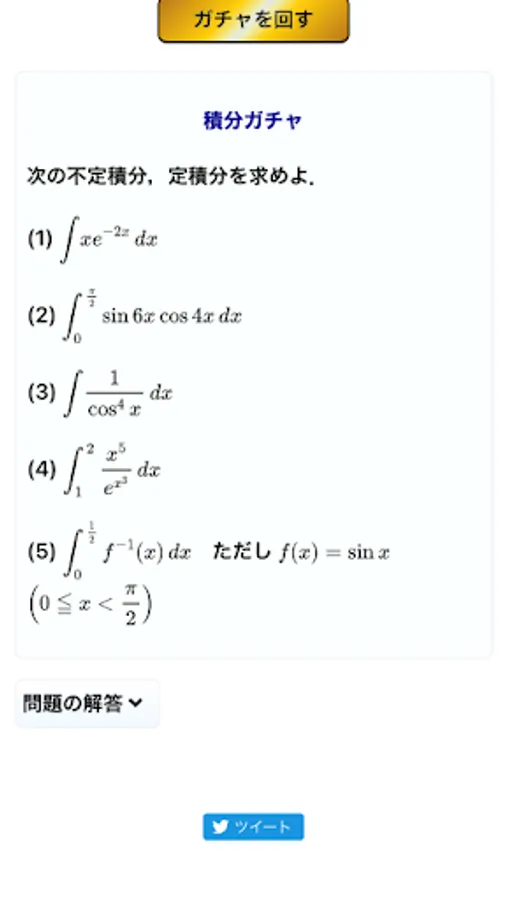 I made an application of the site that makes the integration problem and answer. You can immediately challenge the problem of integration