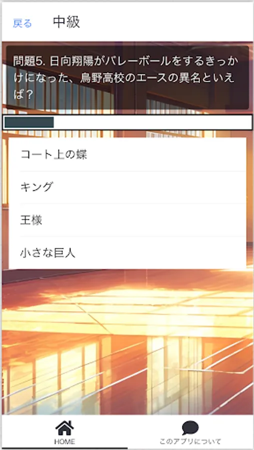 "Welcome to the anime 'Haikyu!!' quiz app! This app is a quiz game where you can learn and challenge the popular volleyball-themed anime 'Haikyu!!' in a fun way.