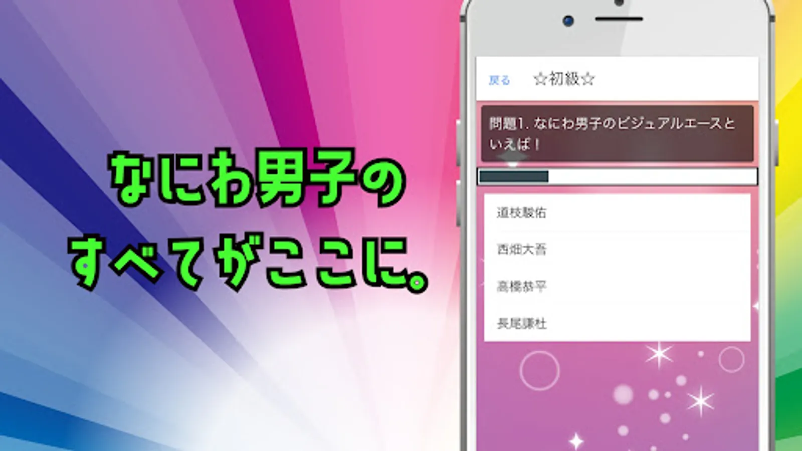 "Quiz for Naniwa Danshi" is the best quiz app for Naniwa Danshi fans. Test your knowledge from simple 4-choice questions to difficult questions!
