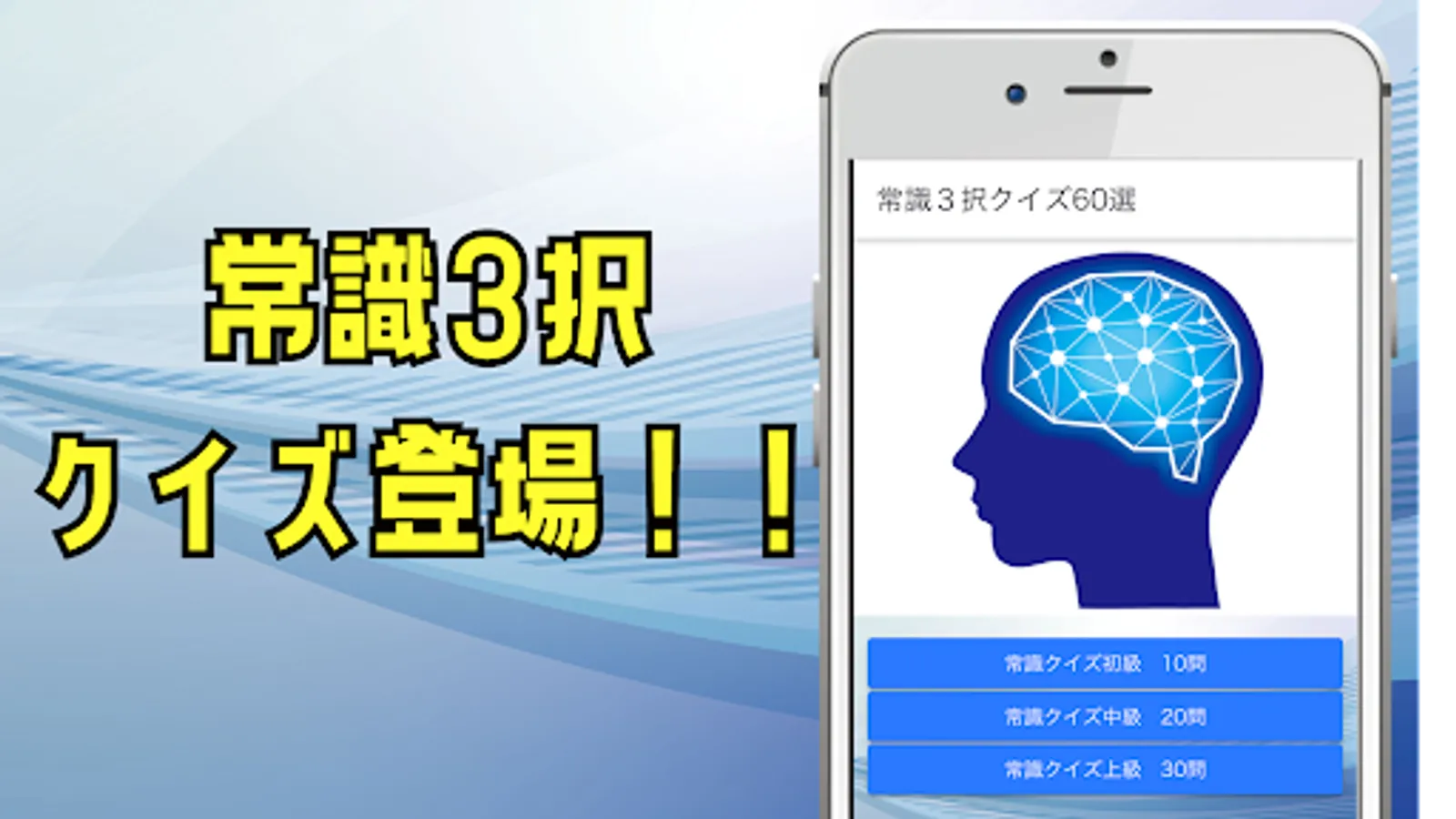 60 unique 3-choice quizzes that will test your common sense. You can freely choose the difficulty level from beginner to advanced, so everyone from beginners to advanced players can enjoy it!