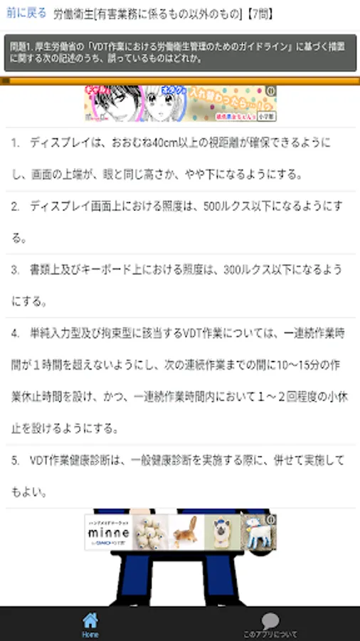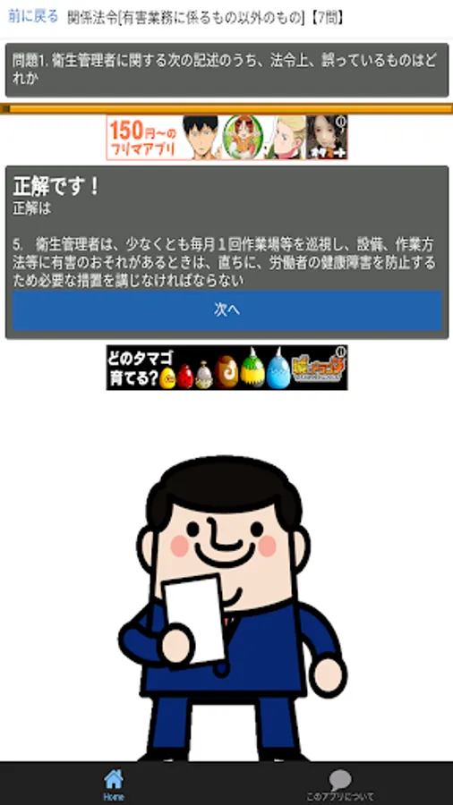 第1種衛生管理者 資格試験の問題集アプリです。