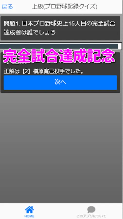 It is a pitcher quiz app to commemorate the achievement of a perfect game.
