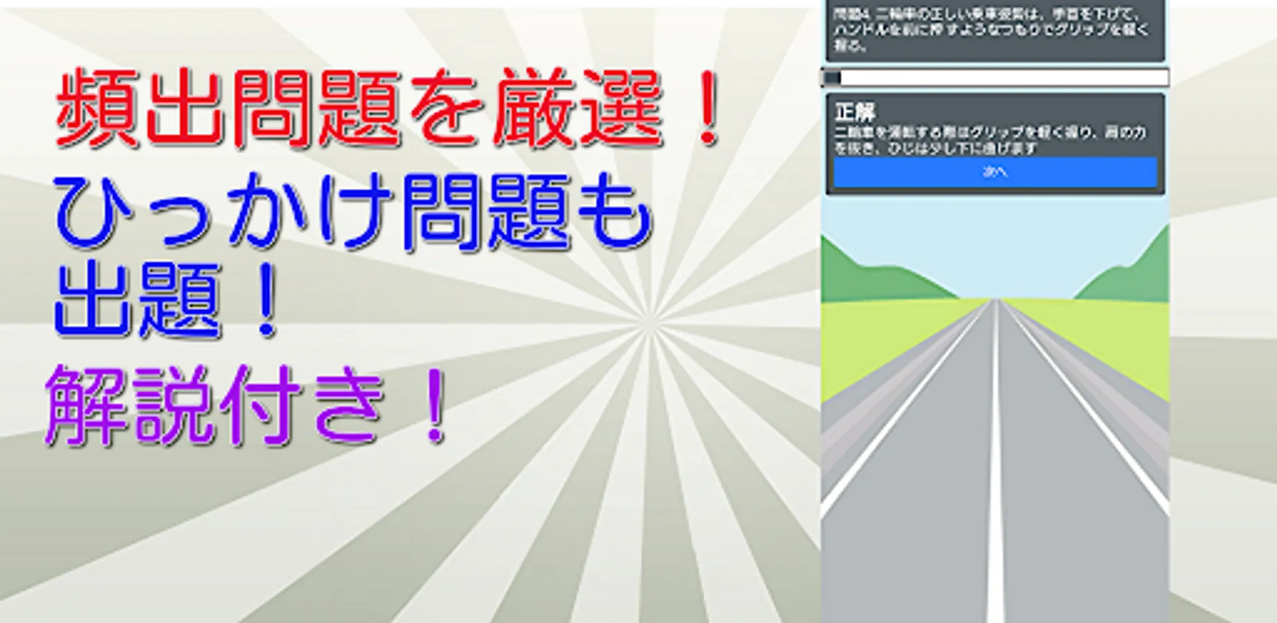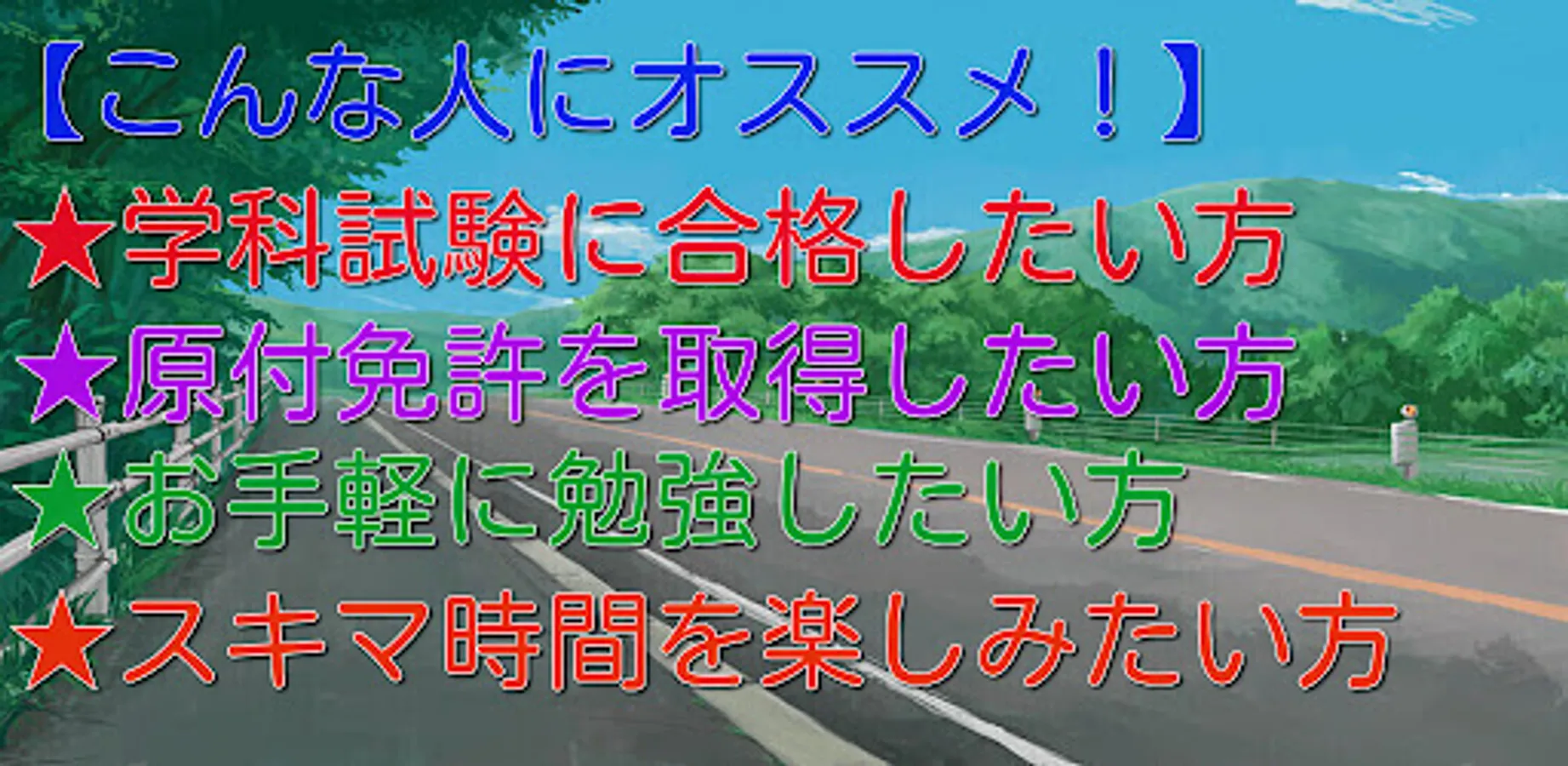 It is a written test countermeasure application for obtaining a moped motorcycle license.