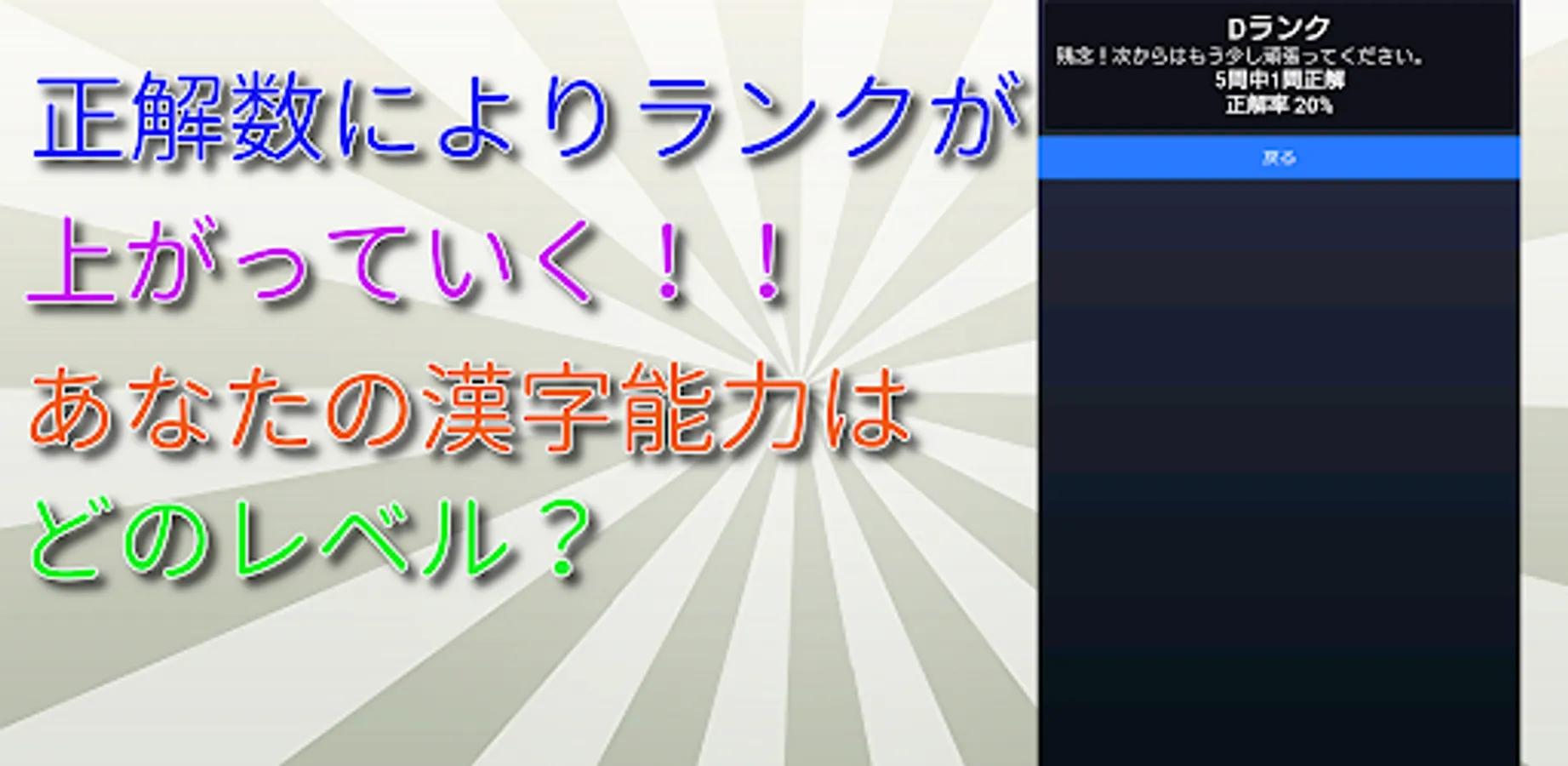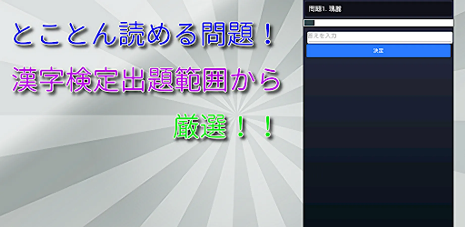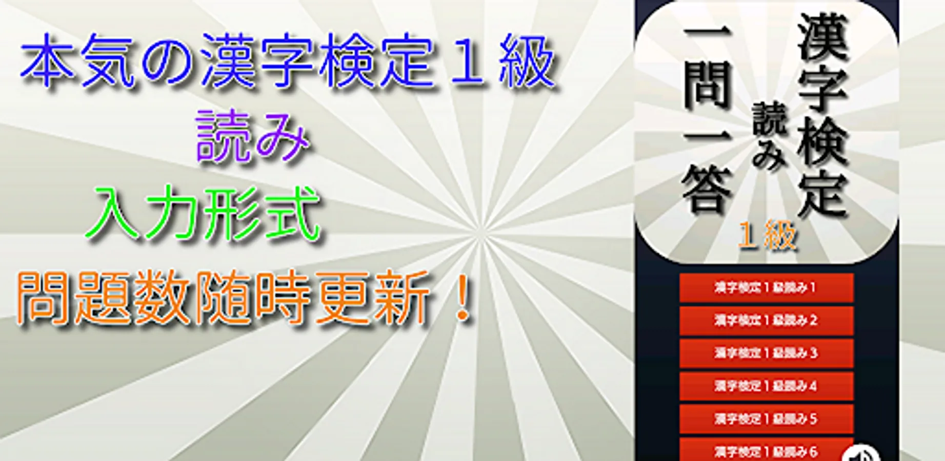 This app is a problem collection app that mainly focuses on "reading problems" that are given in the 1st grade of the Kanji Kentei.