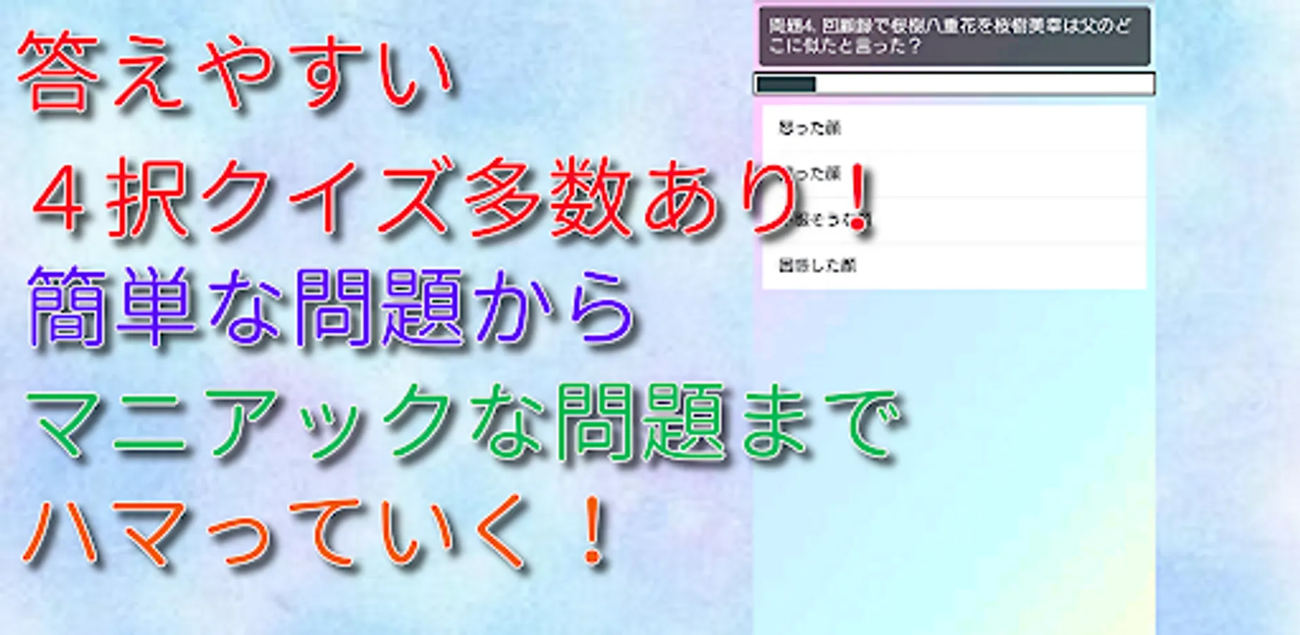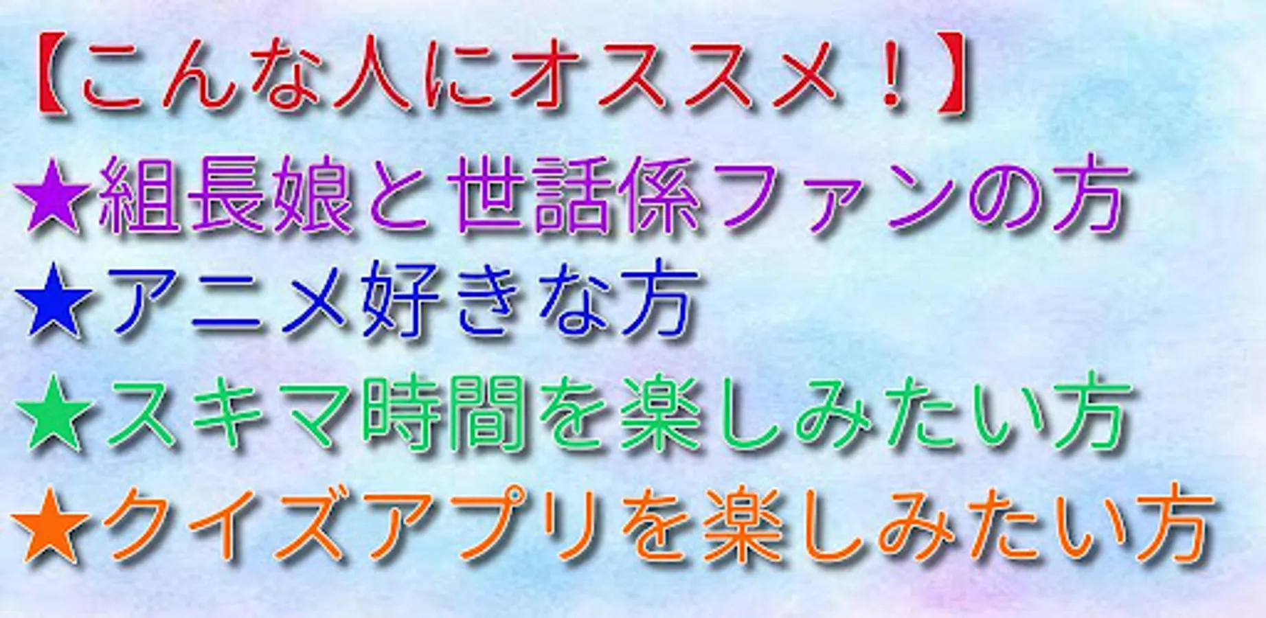 It is a quiz app on the popular anime "boss daughter and caretaker".
