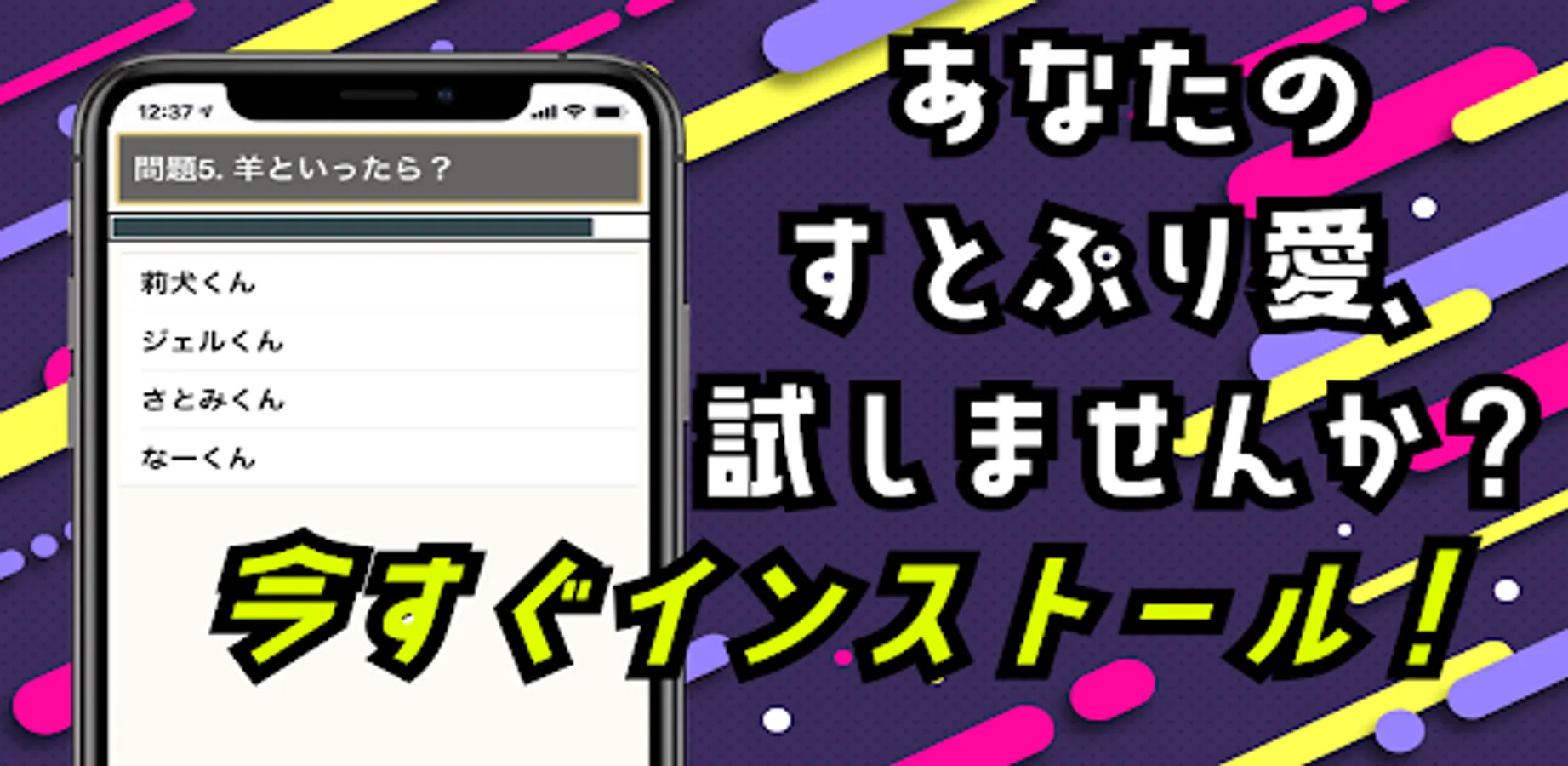 It is an app that allows you to test your knowledge about the members of Sutopuri, a singer group that is mainly active on this app net, and their activities.