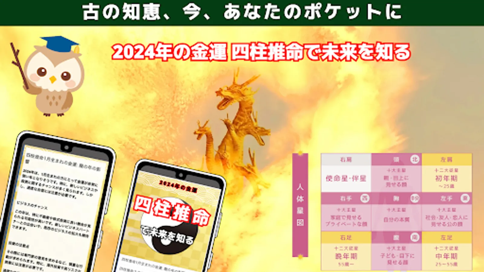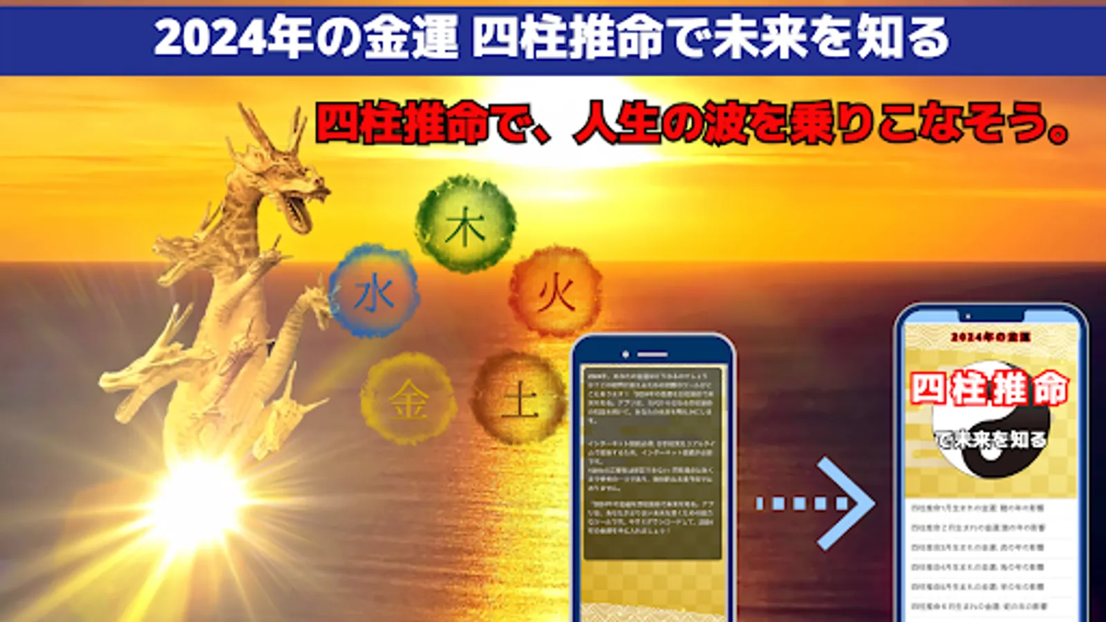 What will happen to your fortune in 2024? Here is the ultimate tool to answer this question! The app "Know the future with the four pillars of destiny for the financial fortune of 2024" will reveal your future using the knowledge of the four pillars of destiny that has been handed down from ancient times.