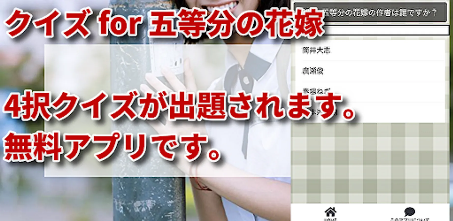 This is an unofficial fan app based on "The Quintessential Quintessential Bride" developed in manga works and anime by Mr. Negi Haruba.