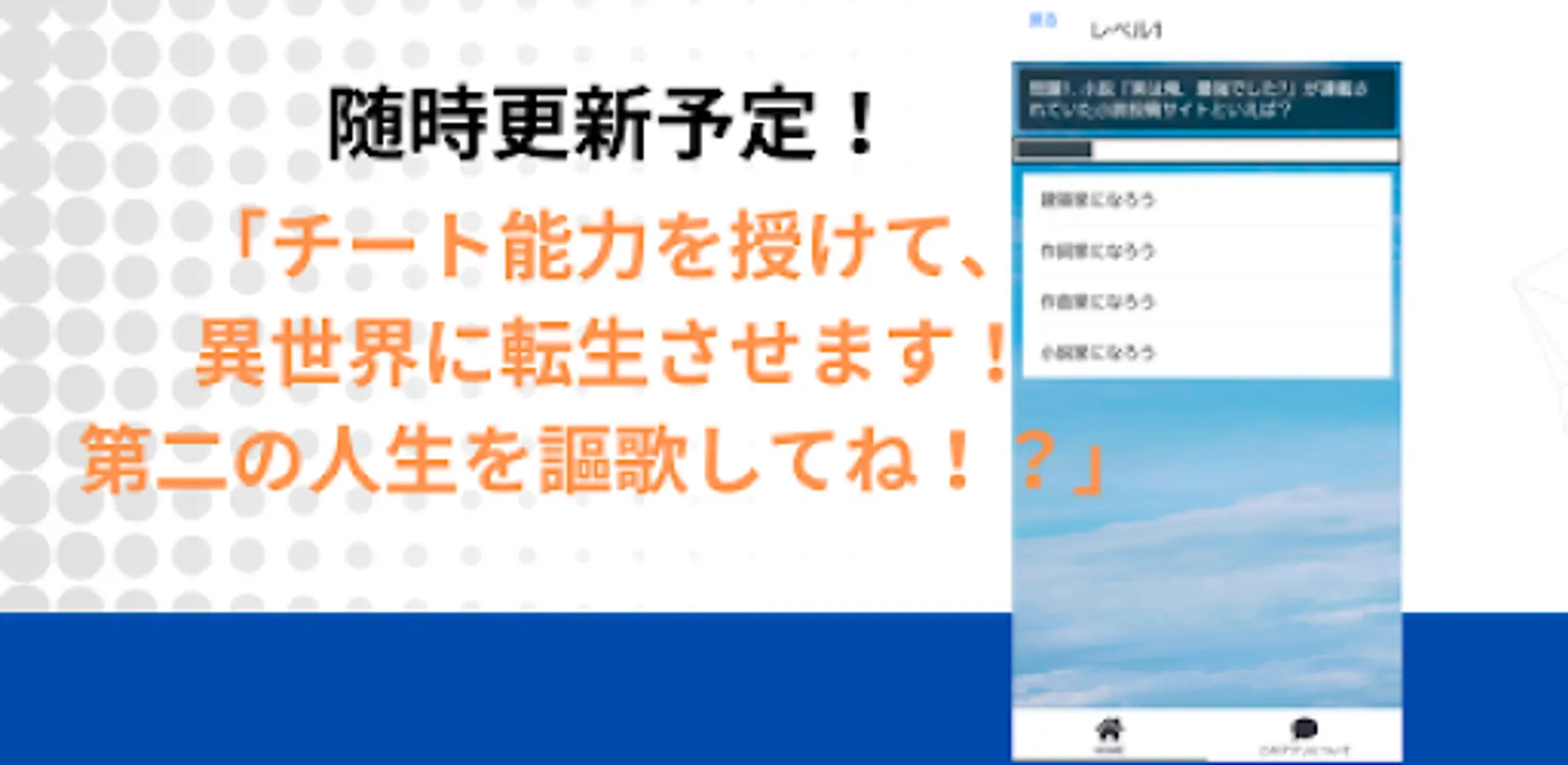 It has been serialized in "Let's become a novelist" since September 1, 2018, and has been published by K Ranobe Books (Kodansha) since May 31, 2019.