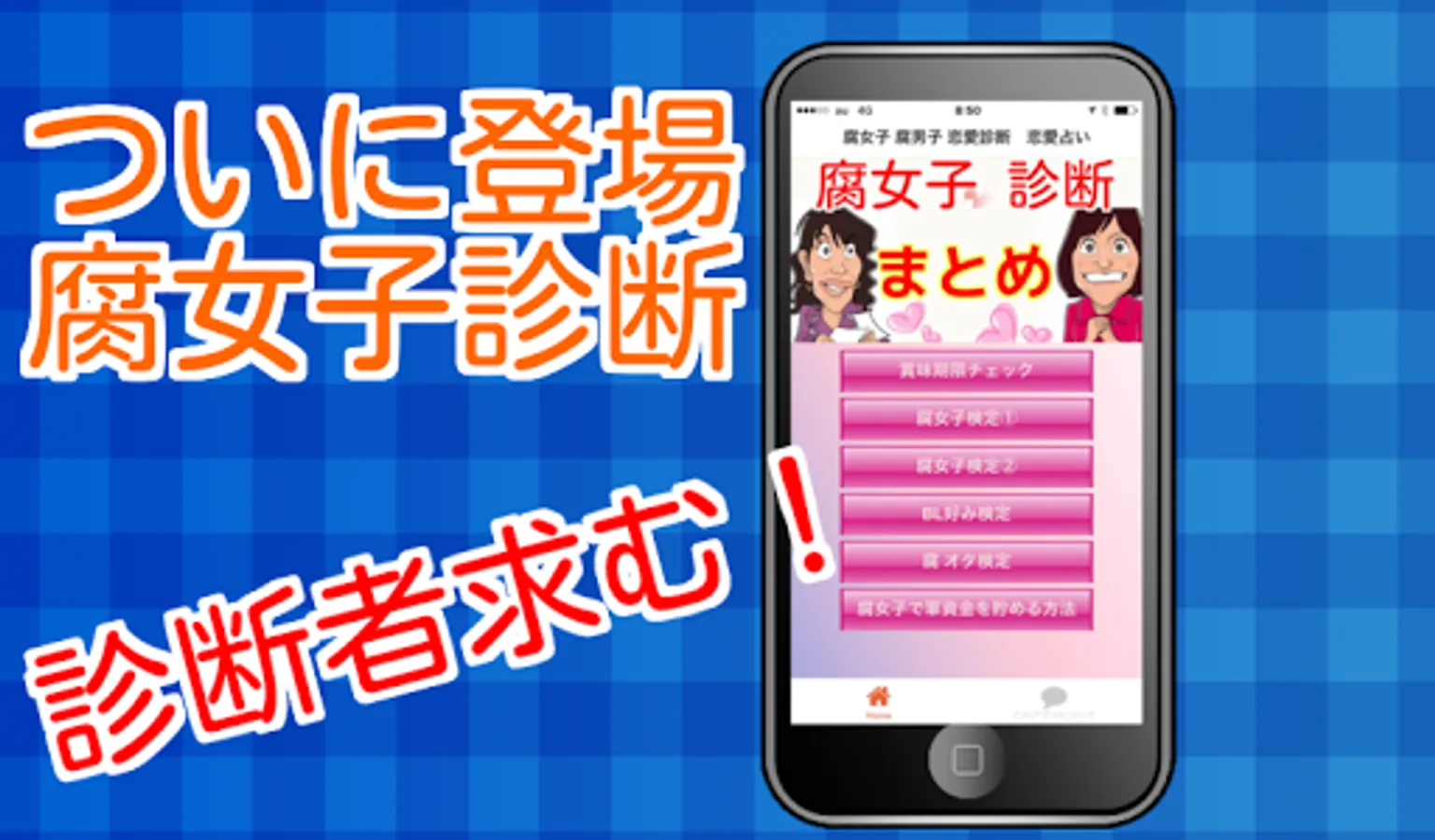このアプリは腐女子度をチェック、腐女子診断を題材とした非公式の無料診断アプリです。あなたの妄想レベル、ボーイズラブ(BL)・やおい(801)・腐趣味を確認しよう