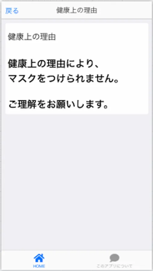 It is an application that can display the reason why you can not put on a mask without talking.