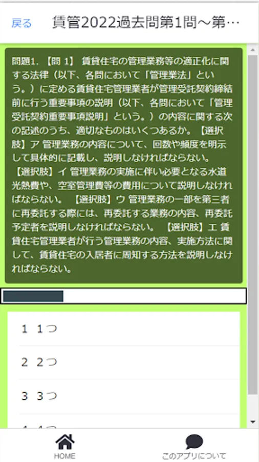 Rental real estate management manager past questions 2022 problems and answers are posted. The answer time is set to 150 seconds, so please try it. Since it is a free app, please challenge those who will take the exam for rental real estate management administrator in 2023.
