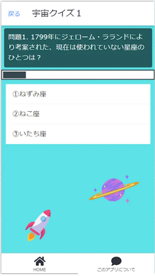 A quiz about space. It's a three-choice quiz, so I think you'll be able to answer easily. It's a free app, so feel free to use it to kill time. I would be happy if you became interested in space.