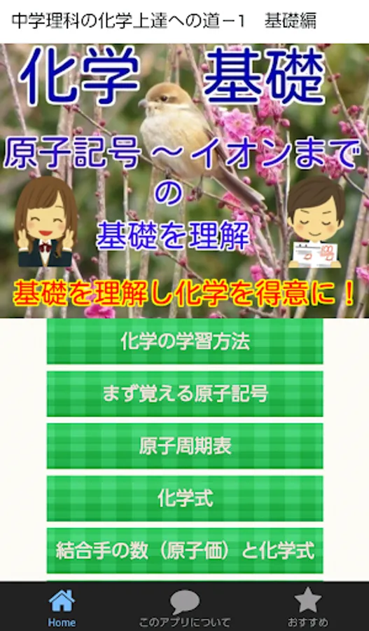 このアプリで化学式の覚え方、考え方のコツが理解でき化学が得意科目になるでしょう。