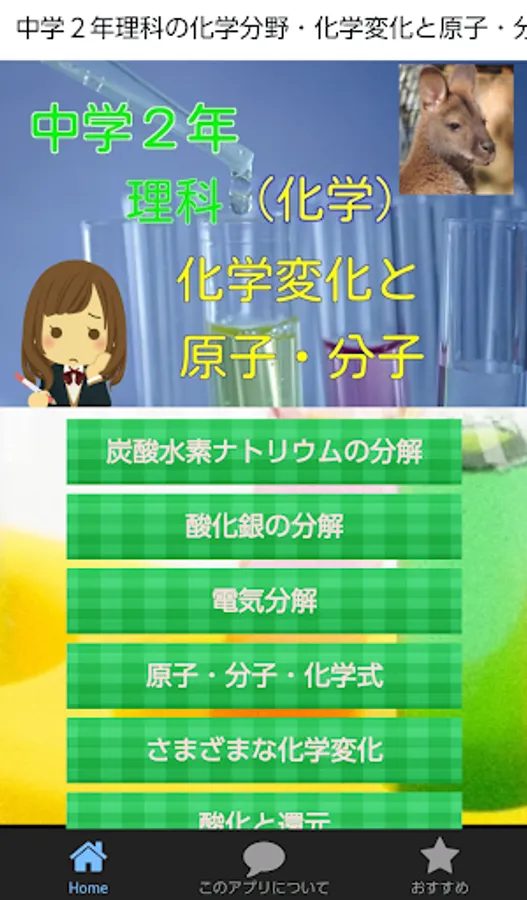 2nd year junior high school science chemistry field-A learning app about chemical changes and atoms / molecules.