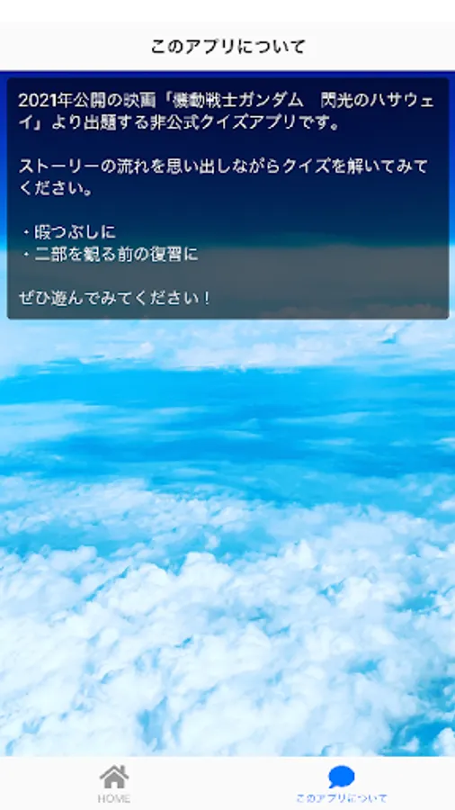 This is an unofficial quiz app from the movie "Mobile Suit Gundam: Hathaway of the Flash" released in 2021.