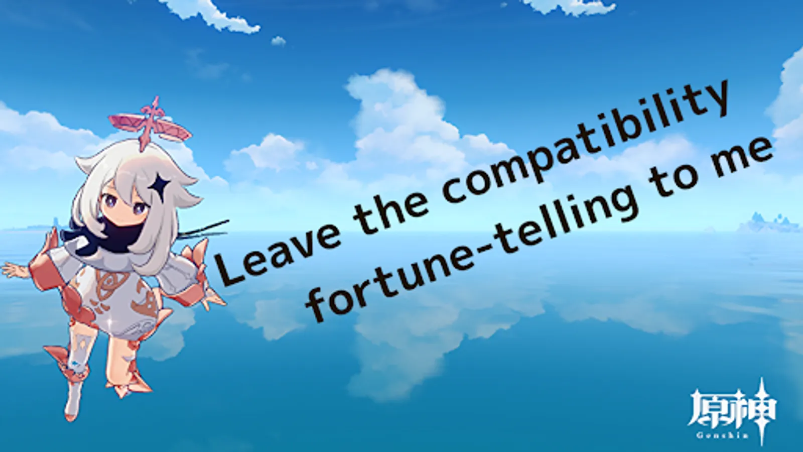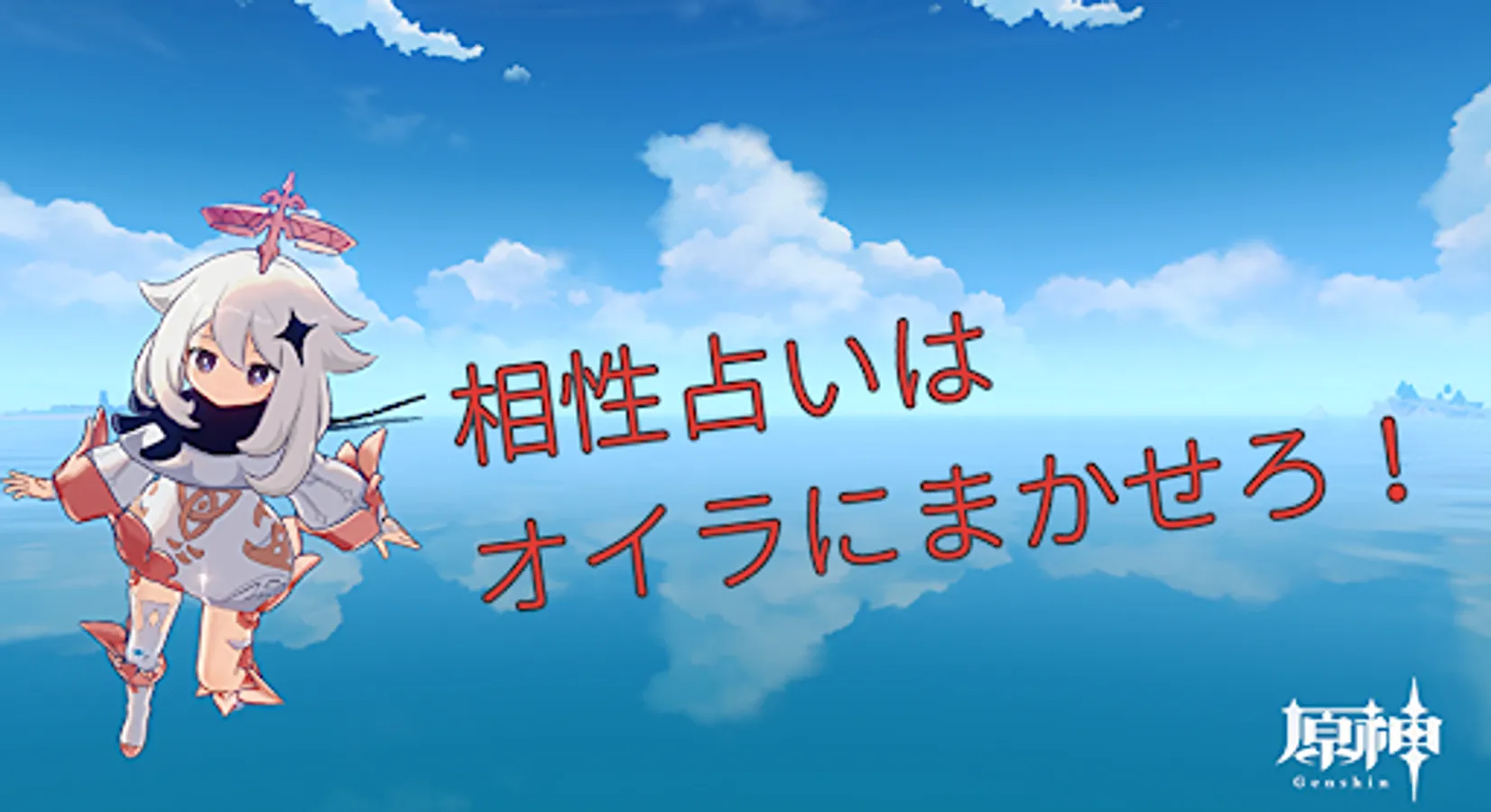 This is a free app for divination compatibility diagnosis of Genshin characters by Paimon-sensei. Let's all have Paimon-sensei check our compatibility!