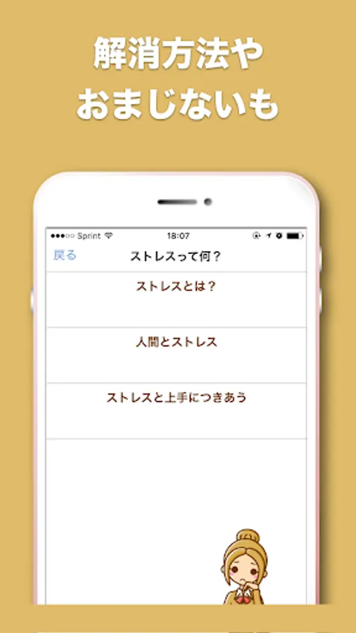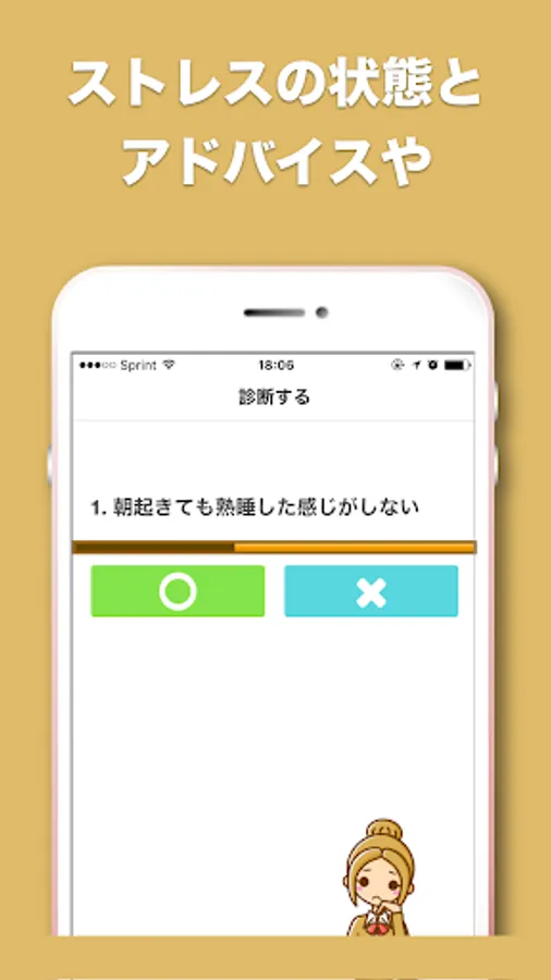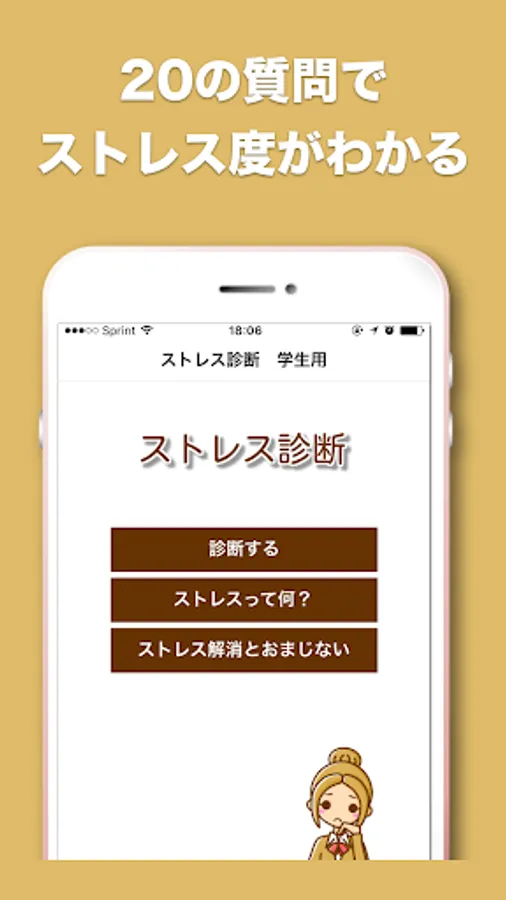 20個の質問に答えると、あなたのストレスの状態とアドバイスが表示されます。