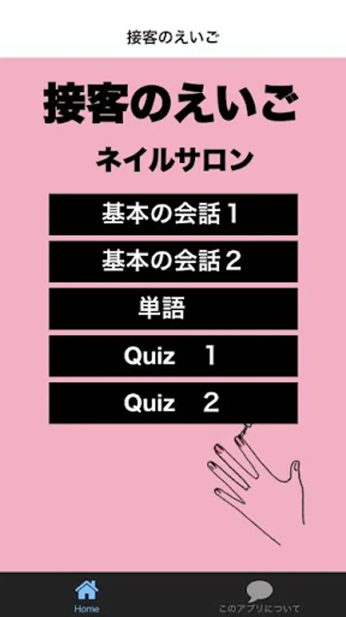 「基本の会話1」「基本の会話2」「単語」で会話と単語を学んで、クイズで確認するようになっています。