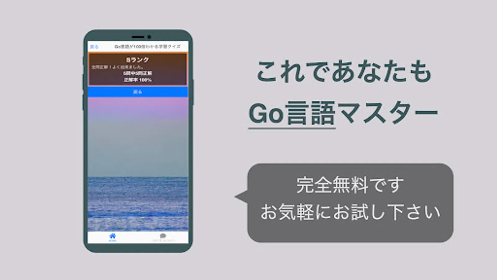 I understand Go language 100 times! The ultimate learning quiz app for Go language (Go Gengo) learners.