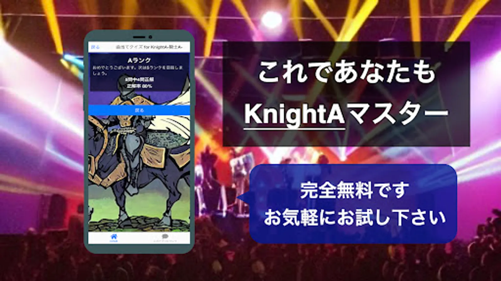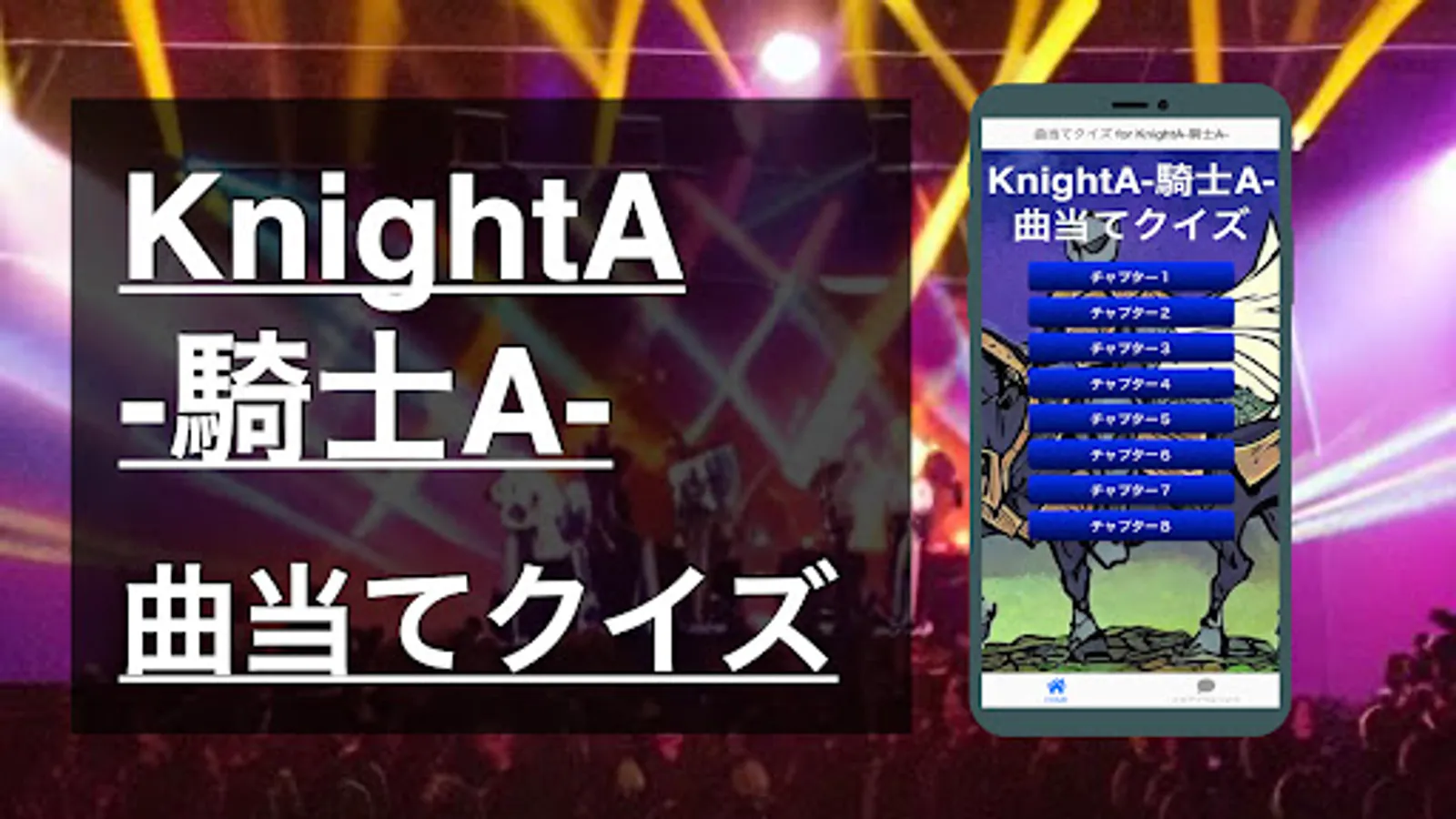大人気アイドルグループ「KnightA -騎士A-」(ナイトエー)の曲に関する、ファン作成の非公式クイズ形式アプリです。
