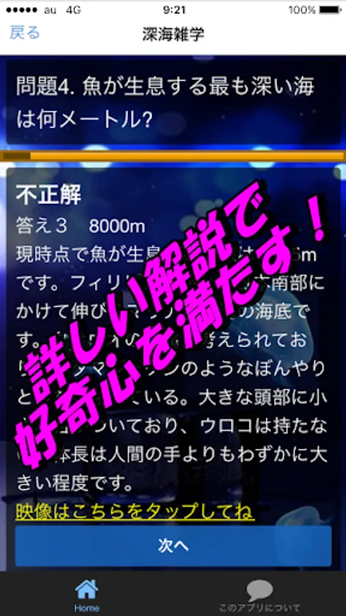深海生物のクイズアプリです。