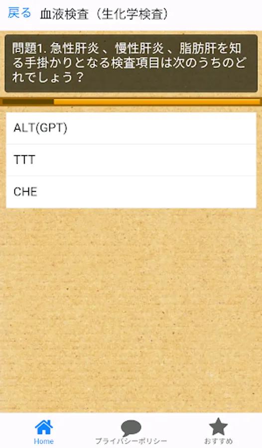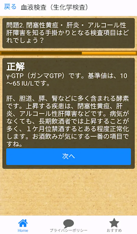 血液検査や健康診断・人間ドックの検査結果にはいろいろな略語が使われています。このアプリでは、そのような略語の意味や基準値をクイズ形式でまとめてみました。皆さんの健康の一助になればと思っています。