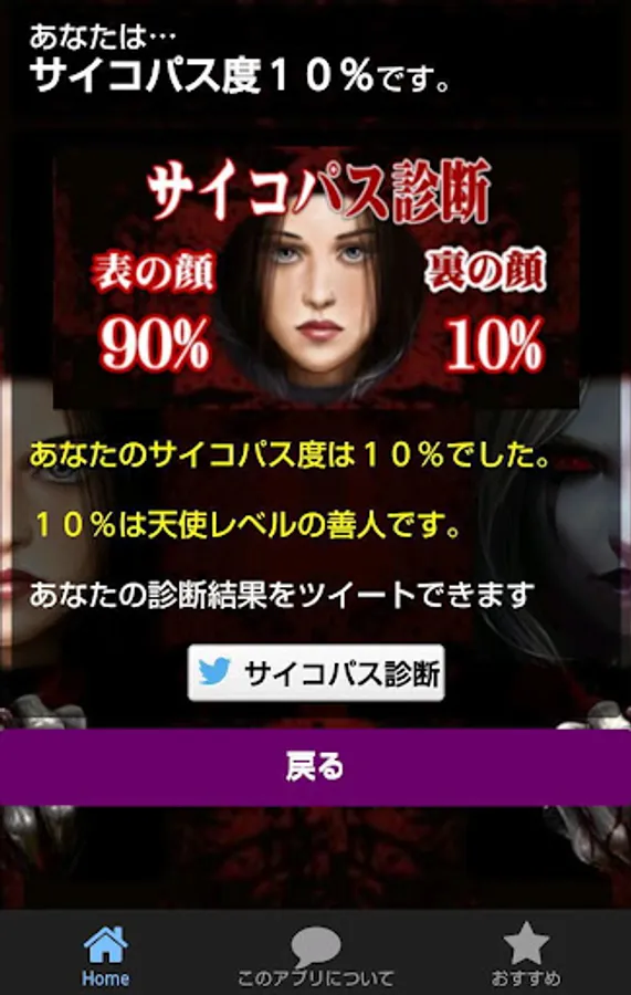 ・ It is not an official psychopath diagnosis. This is a play app for killing time.