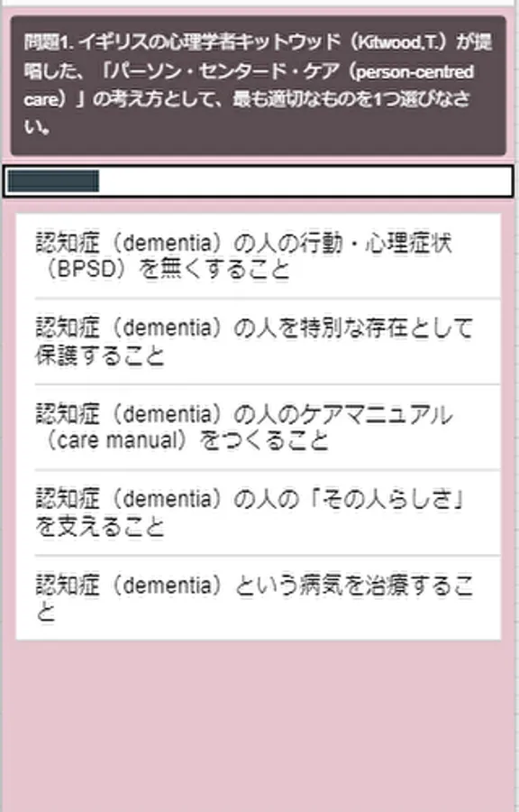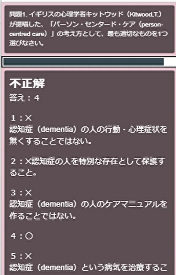 In this app, the field of "Understanding Dementia" is divided into categories with just the right number of questions. By repeating this, you will be able to learn important words and phrases and understand the tendency of questions. The questions are given so that you can do it quickly during breaks and lunch breaks, so please use it.