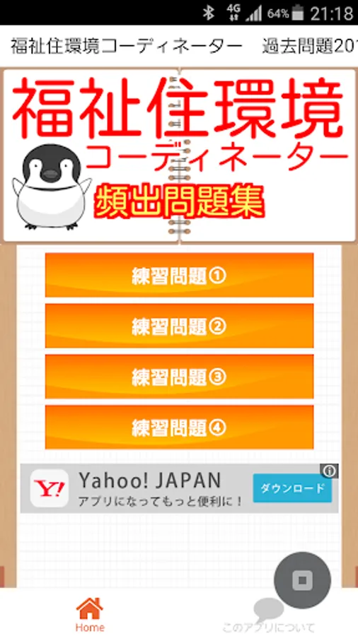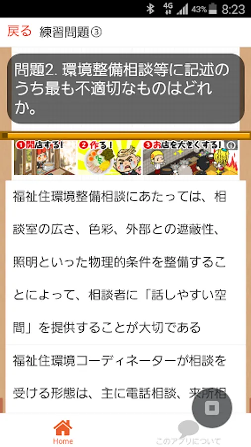 介護施設やグループホーム、さらには医療系の施設から病院まで今注目の高齢社会に欠かせない住まいのアドバイザー「福祉住環境コーディネーター」を題材とした非公式の無料学習アプリです。このアプリでは「福祉住環境コーディネーター2級」と「福祉住環境コーディネーター3級」を平行して学べるようになってます。