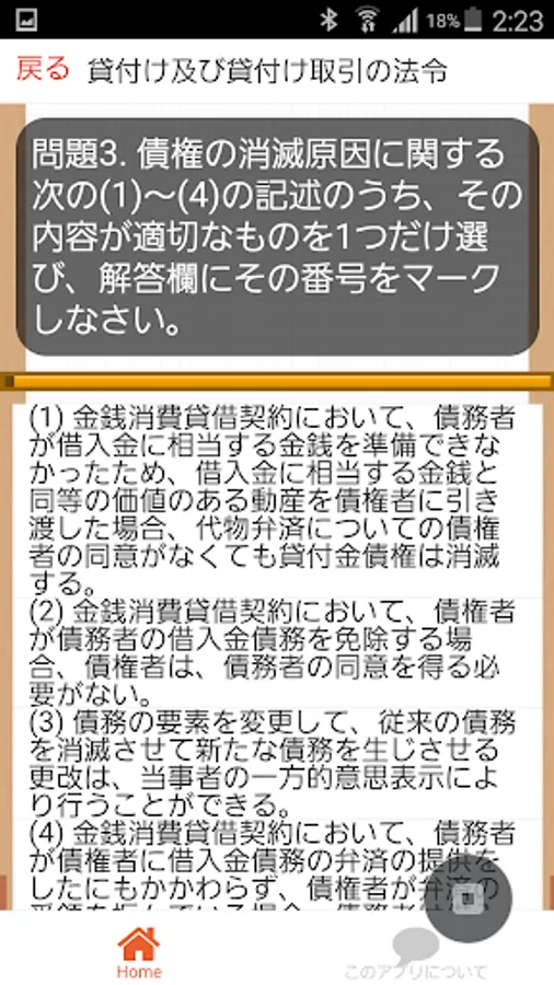 このアプリは貸金業務取扱主任者(かしきんぎょうむとりあつかいしゅにんしゃ)の国家試験を目指す方に向けた非公式の無料学習アプリです。