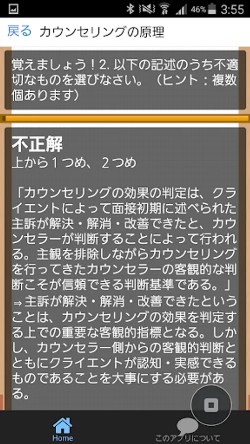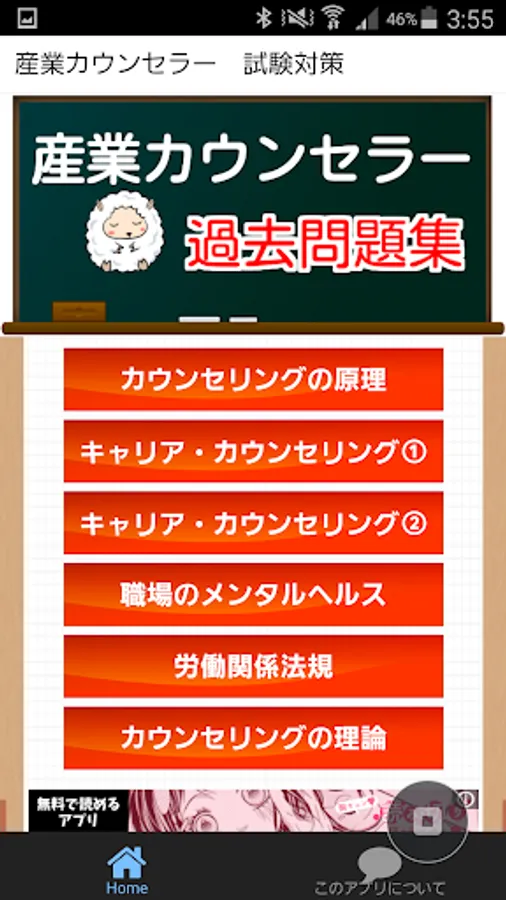 このアプリは、メンタルヘルスや心の病に産業カウンセラーを目指す方向けの非公式の無料学習アプリです。とくに仕事について、問題を抱えて困っている人の話に耳を傾け、助言を与える専門家のことです。主に企業などで人間関係やストレスなどに悩む従業員の心のケアを専門的に行います。現代のストレス社会において、必要不可欠な仕事です。メンタルヘルスマネジメントも一緒にとるとさらに役立ちます。心のカウンセリングをして、社会を助ける意義のある資格ですので、皆さまの合格を心より祈っております。