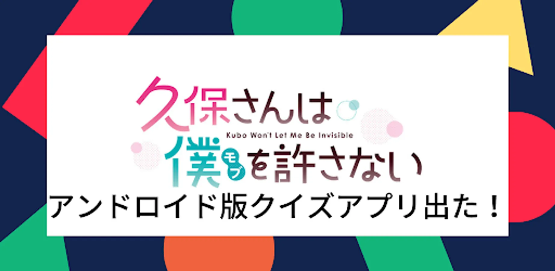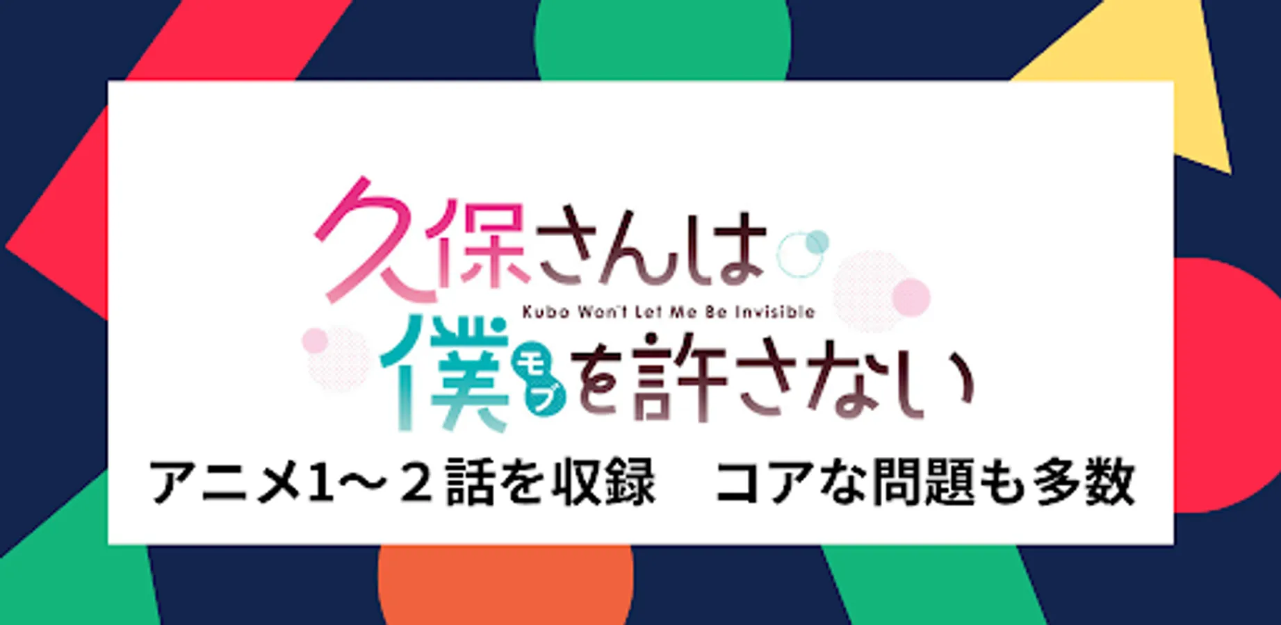 Spring anime lovers, please try the quiz Kubo-san won't forgive me! This app contains episodes 1 and 2 of the currently airing "Kubo-san won't forgive me" anime, and provides knowledge and fun at the same time. This is an anime quiz app that even the most enthusiastic anime fans can enjoy.