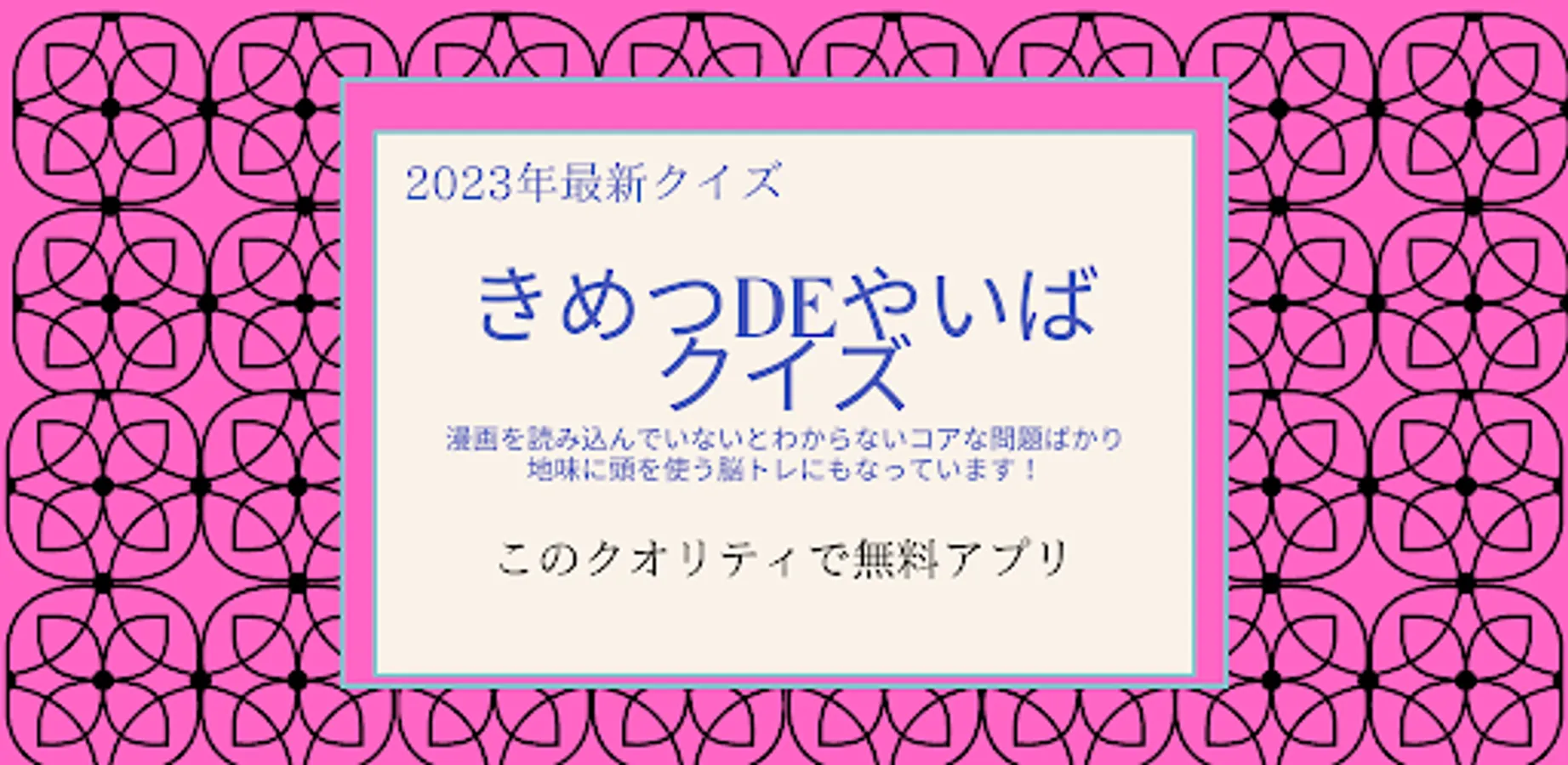 Through this app, you can feel the charm of "Kimetsu no Yaiba" again and deepen your knowledge through quizzes. In addition, there are various ways to enjoy the game, such as ranking competition with other players and playing against friends. By all means, not only fans of "Kimetsu no Yaiba", but also those who are interested, please experience the world of "Kimetsu no Yaiba" with this app.