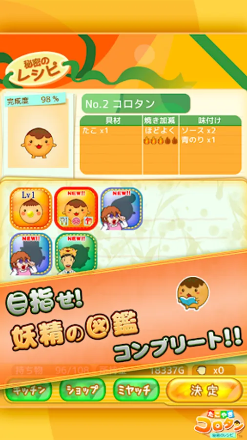 "Takoyaki Korotan ~ Secret Recipe ~" is a slightly unusual cooking and training game where you can enjoy the takoyaki life with the fairy Korotan and his friends who are born by making takoyaki!