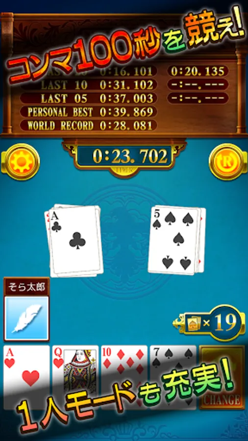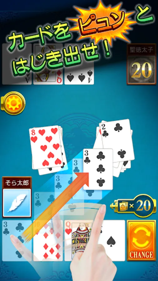 -You can change your hand at any time with the change button (change system). You can relieve the stress when you don't have a card to play, and enjoy the bargaining of "change the card" or "wait until you can play" when you can't play!