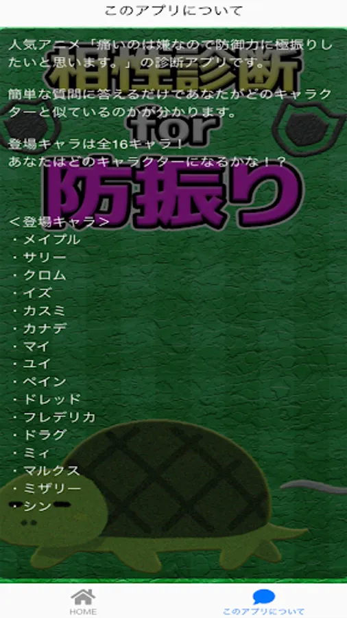 This is a diagnostic app for the popular anime "I don't want to get hurt, so I want to maximize my defense."