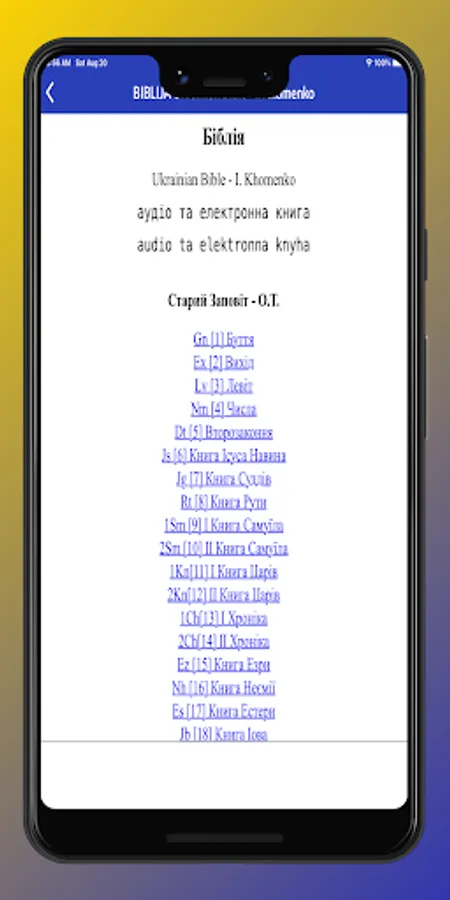 The app includes the complete Ukrainian Bible Audio & E-Book. A dramatic reading audio and the ebook Study Bible - Old and New Testament plus many free features.