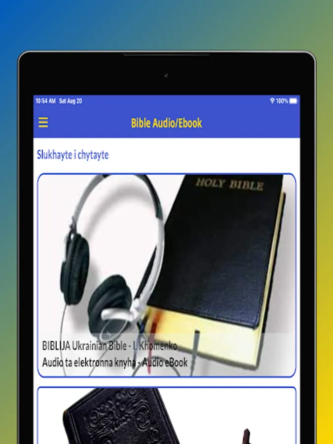 - Слухайте Святу Біблію за розділами або повними книгами