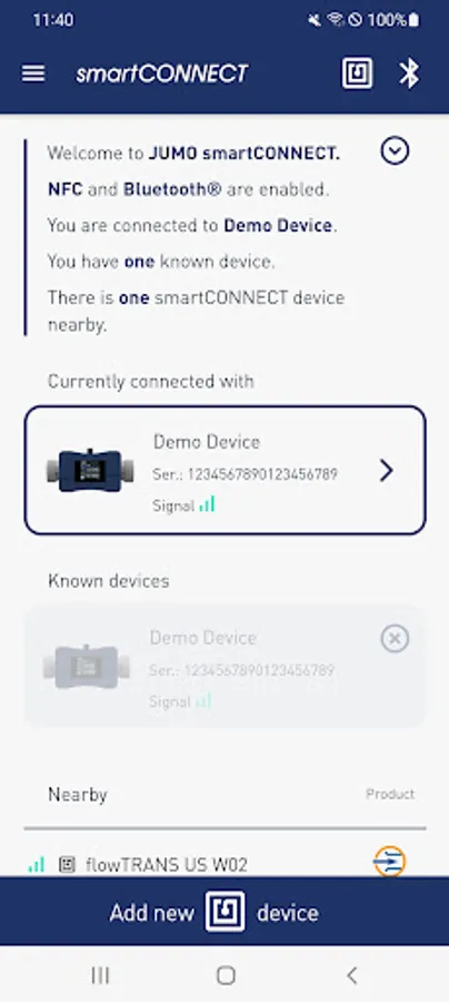 JUMO smartCONNECT allows simple, intuitive, and fast access to the following JUMO products via Bluetooth: