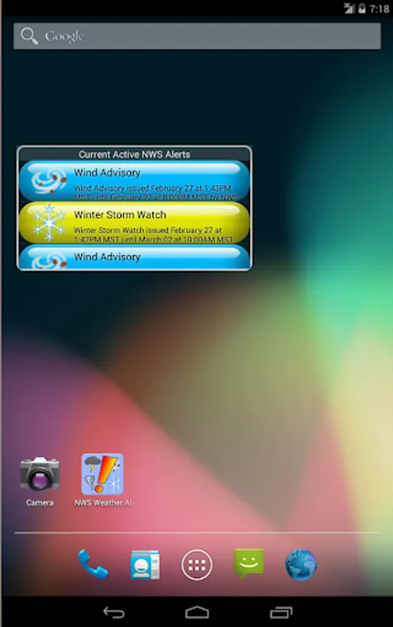 This is an Android home screen widget to display current weather alerts from the US National Weather Service.