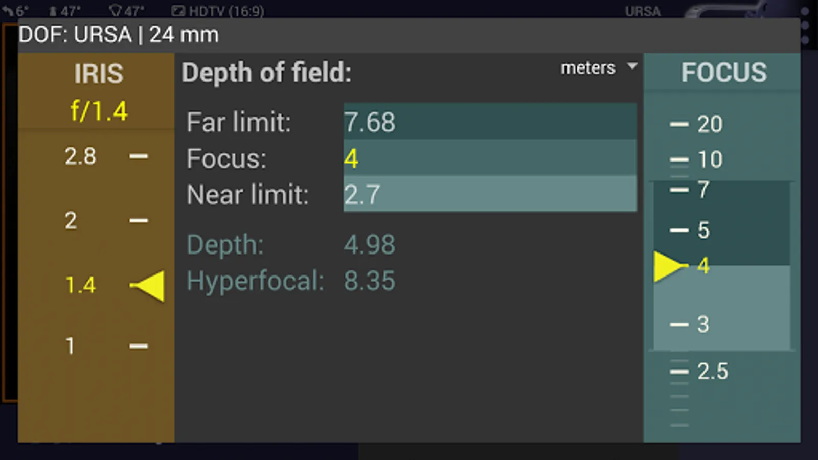 Depth-Of-Field tool: If you want to check depth-of-field, press DOF icon and calculate the near and far limits of DOF while changing the aperture and the focus distance.