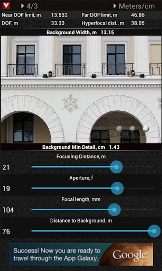 Second, the app measures the blurriness – by the details of the background that can or cannot be recognized (’resolved’) in the final image. For example, wrinkles, hair, small letters of logo may be your details. So you can easily calculate your shooting settings to keep some fine details sharp or intentionally blurred.