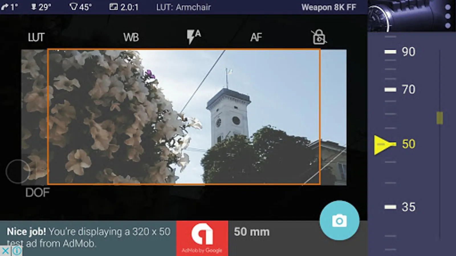 To turn off adverts, increase the scope of supported cameras to ARRI Alexa, Blackmagic, as well to Panasonic, Sony, Canon, Nikon and 4/3 formats, to use all available optical adapters, frame guides and anamorphic indexes, please purchase advanced Magic Universal ViewFinder app.