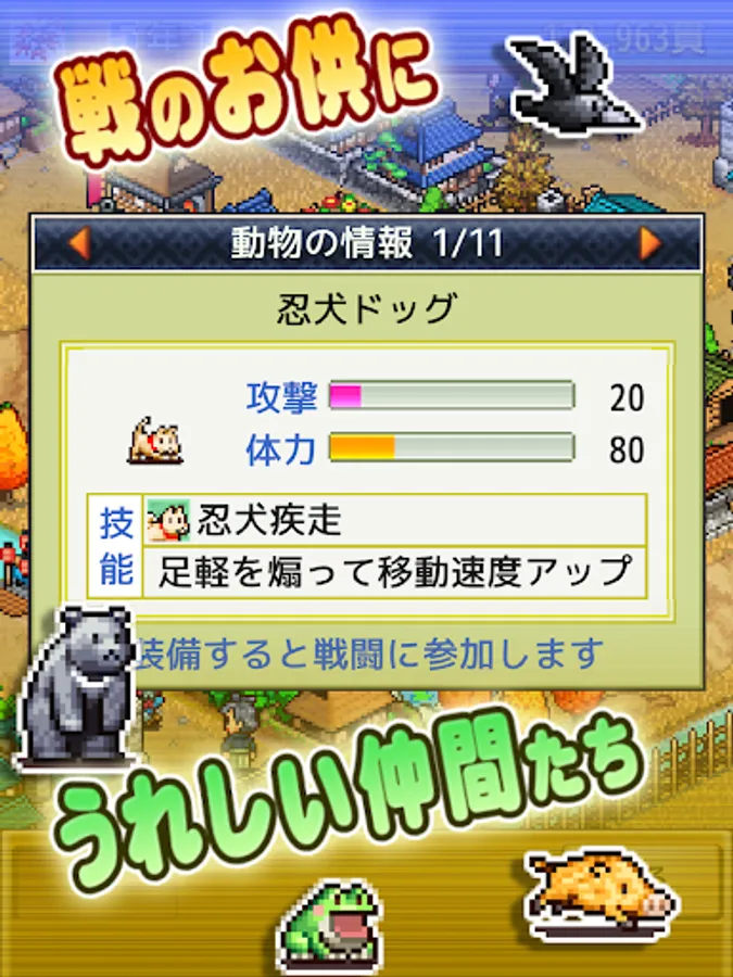Products and the villagers (actually ninja) we made in the pilfering of the village, the timber and ore mined from the village, selling to travelers who visit the village will not earn money. Money is used as a military funds, the villagers of training and equipment, let's run a village very well so be used for the enhancement of military forces.