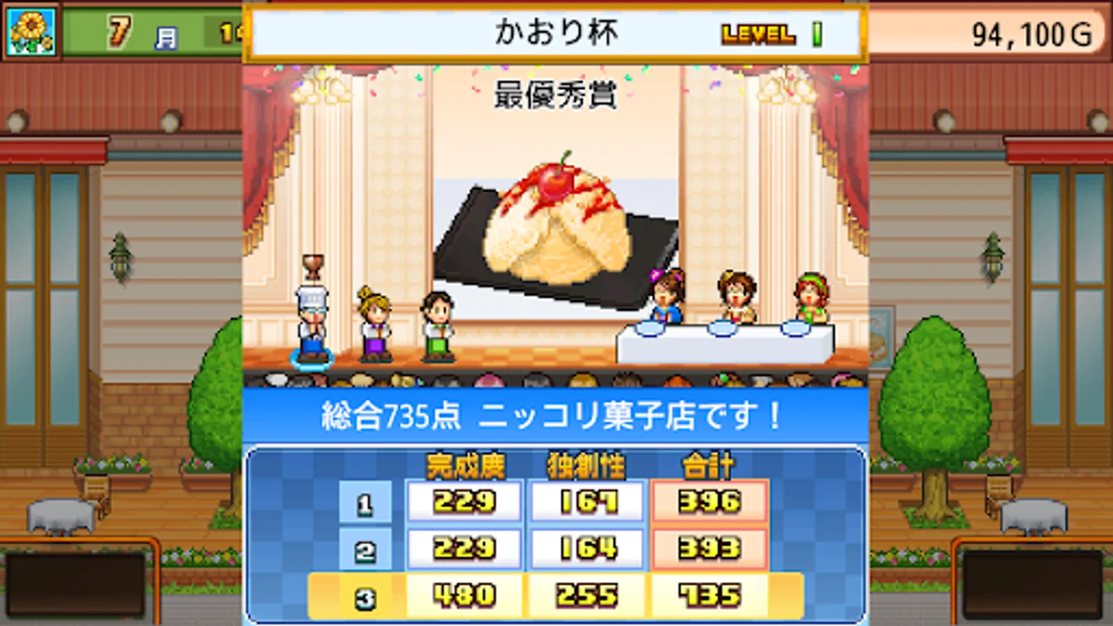 A pastry chef training game where customers flock to the shop if you win the contest.